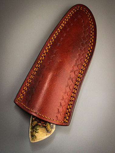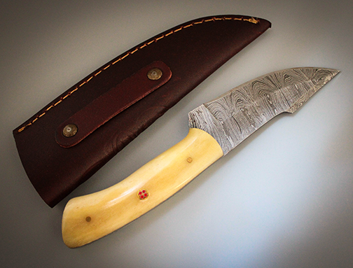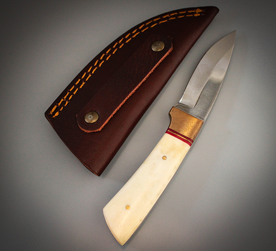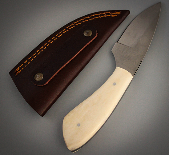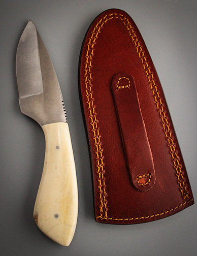 "Forest Trail" Fixed Blade Bone Handled Knife with Sewn Leather Sheath
