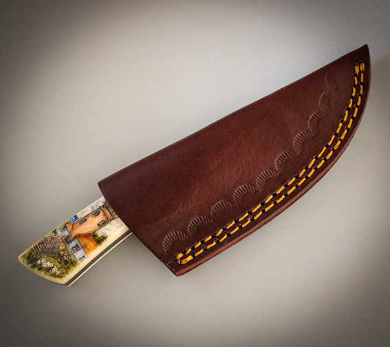 "Wildflower Bay" Fixed Blade Bone Handled Knife with Sewn Leather Sheath
