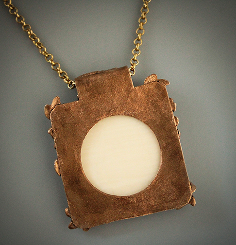 "Peony Garden" Scrimshaw Mammoth & Sculpted Bronze Pendant