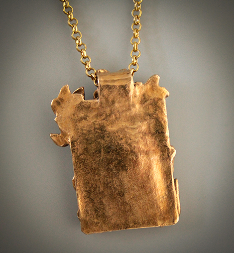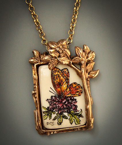 "Butterfly Garden #5" Scrimshaw Mammoth & Sculpted Bronze Pendant